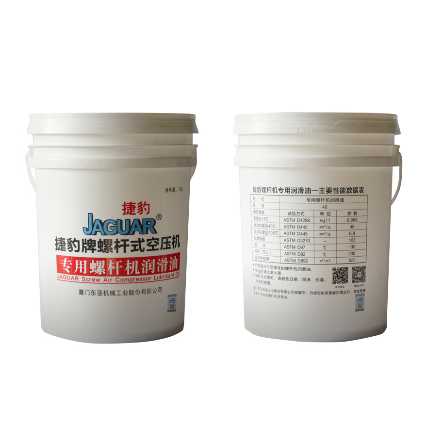 捷豹牌螺桿式空壓機(jī)選用原裝進(jìn)口高品質(zhì)螺桿式空壓機(jī)專用油,采用精制石蠟基基礎(chǔ)油及特選添加劑調(diào)制而成的優(yōu)質(zhì)無(wú)灰型空氣壓縮機(jī)油。給金屬表面提供全面的保護(hù),同時(shí)有極佳的抗氧化性和熱穩(wěn)定性,也有良好的抗磨性、分水性、空氣釋放性以及防腐蝕特性。